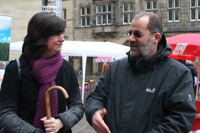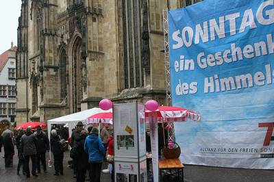 Gemeinsam mit dem Team Münster zeigt die CDA Münster nicht nur sprichwörtlich Flagge für einen arbeitsfreien Sonntag: im Einklang mit den kirchlichen Trägern direkt vor der Lambertikirche am Prinzipalplatz.